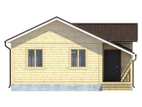 Проект одноэтажного дачного дома 55 сочетает в себе европейские архитектурные элементы и мотивы русского деревянного зодчества. В дизайне дома применены оригинальные решения: геометрия линий, цветовой контраст между кровлей и деревянными элементами.