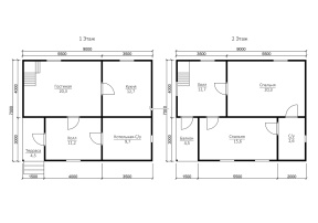 Планировка дачного дома выполнена с максимальным задействованием внутреннего пространства. Равномерное освещение комнат обусловлено продуманным расположением окон. Использованный в строительстве экологически чистый, натуральный материал – профилированный брус – придает дому респектабельный вид.