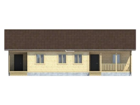 Проект одноэтажного дачного дома 45 сочетает в себе европейские архитектурные элементы и мотивы русского деревянного зодчества. В дизайне дома применены оригинальные решения: геометрия линий, цветовой контраст между кровлей и деревянными элементами.