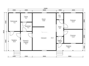 Общая площадь дома с сауной составляет 121.1 кв.м., размеры дома – 8х15,5 м..