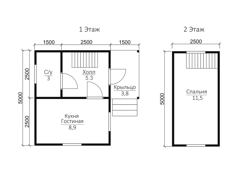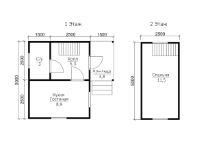 Общая площадь дома с составляет 29.79 кв.м., размеры дома – 5х4 м..