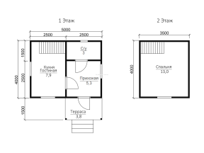 Общая площадь дома с составляет 30.1 кв.м., размеры дома – 5х4 м..