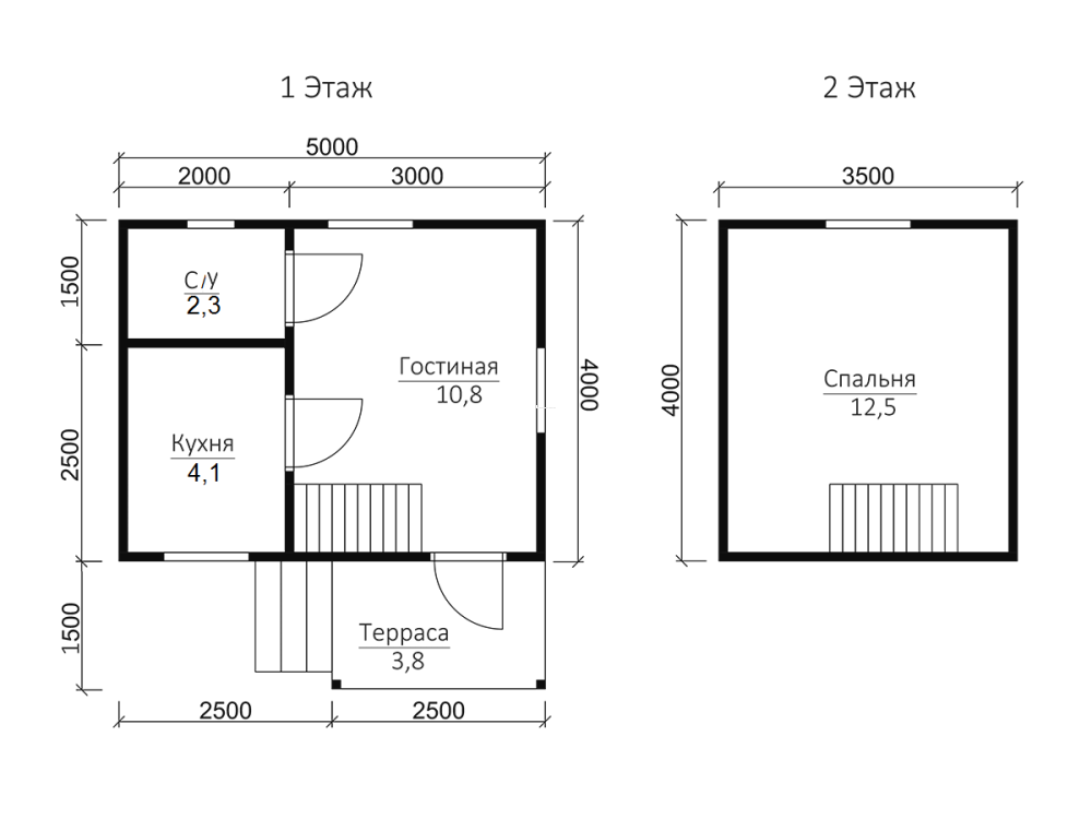 Общая площадь дома с составляет 31 кв.м., размеры дома – 5х4 м..