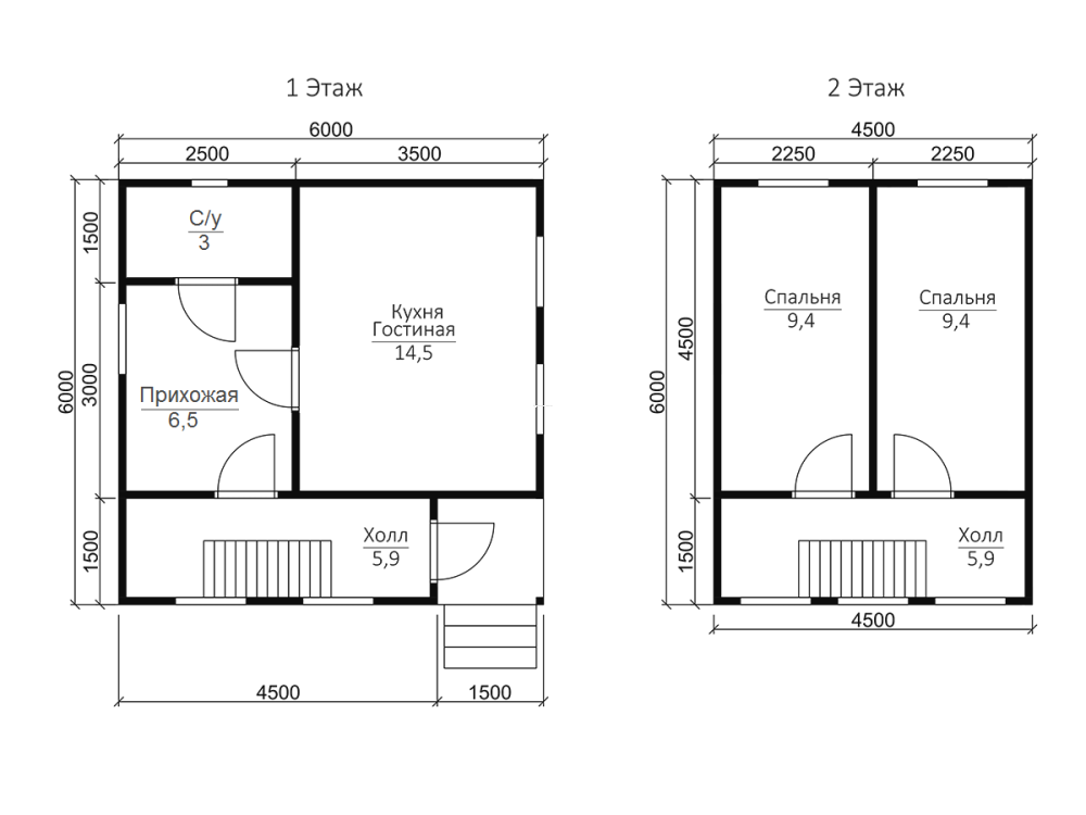 Общая площадь дома с составляет 36 кв.м., размеры дома – 6х6 м..