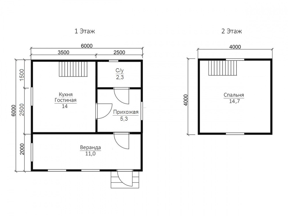 Общая площадь дома с составляет 49 кв.м., размеры дома – 6х6 м..