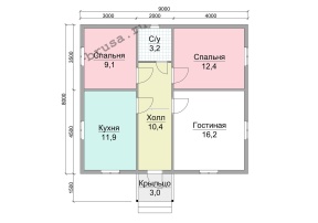 Общая площадь дома с составляет 63.2 кв.м., размеры дома – 8х9 м..