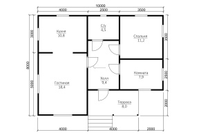 Общая площадь дома с составляет 68 кв.м., размеры дома – 8х10 м..