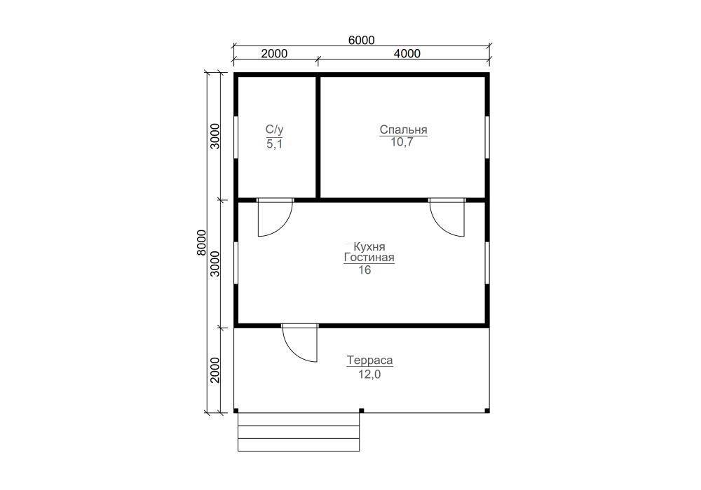 Проект одноэтажного дома 84 подойдет для постоянного проживания с семьей или загородного сезонного отдыха в Великом Новгороде. Архитектурное решение дома площадью 32.8 кв.м. и его главная особенность – это большой террасой.