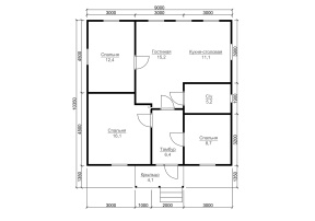 В доме есть все, что нужно для комфортной и удобной жизни: спальная и обеденная зоны, кухня и ванная. Во всех комнатах предусмотрены окна в двойном зимнем исполнении. двускатная крыша может быть выполнена в разных цветах – красный, зеленый, коричневый.